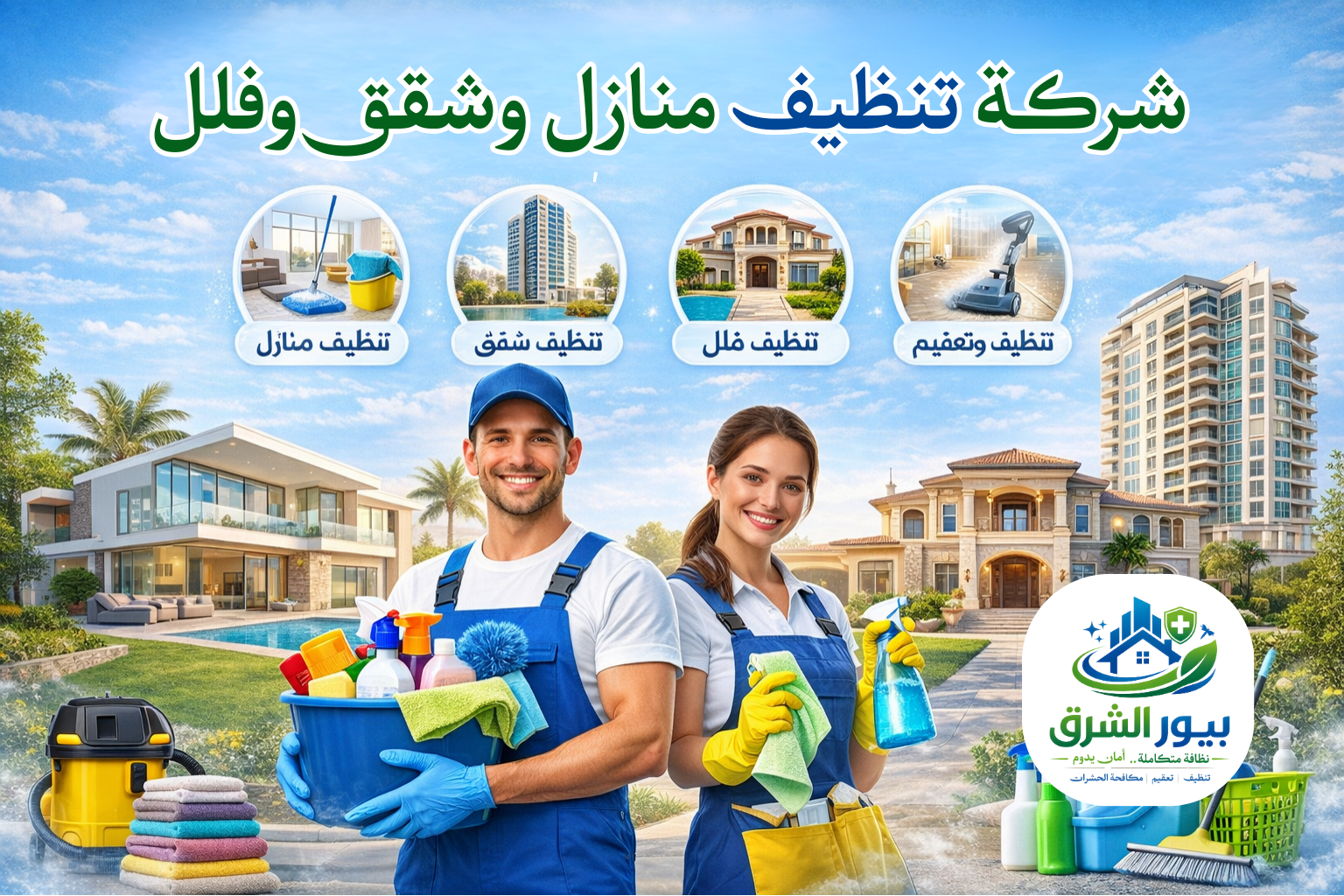 فريق بيور الشرق المتخصص جاهز لخدمتك وتقديم حلول تنظيف وتعقيم موثوقة بأعلى معايير الجودة. نلتزم في بيور الشرق بتقديم خدمات تنظيف وتعقيم احترافية تضمن لك بيئة نظيفة وآمنة دائمًا. خبرتنا وفريقنا المتخصص يجعلون راحتك ونظافة منزلك أولويتنا الأولى.