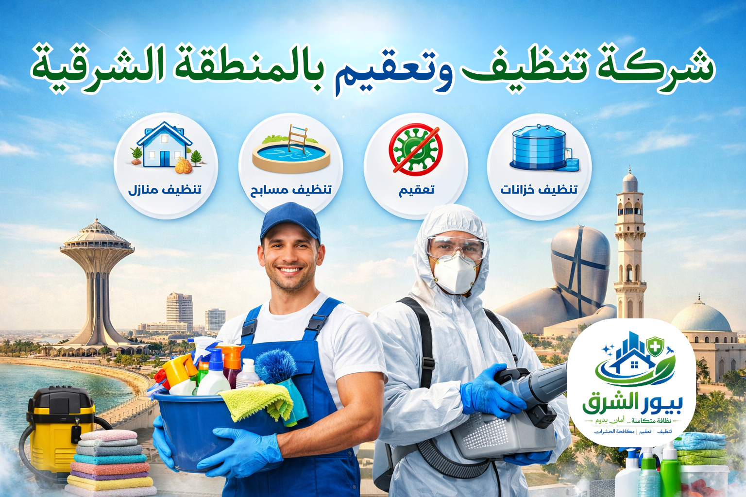 لأننا في بيور الشرق نؤمن بأن راحتك تبدأ من نظافة مكانك. نقدم لك خدمات احترافية تعتمد على الجودة والسرعة والدقة، مع فريق متخصص وأدوات متطورة. بيور الشرق هي شركة سعودية متخصصة في تقديم خدمات التنظيف والمكافحة المنزلية والمهنية بأعلى معايير الجودة. نغطي مدن الدمام ،الخبر ،الظهران ، سيهات ، بقيق ، راس تنوره ، ونلتزم بتقديم حلول فعّالة باستخدام أدوات حديثة ومواد آمنة. رضا عملائنا هو أولويتنا دائمًا.